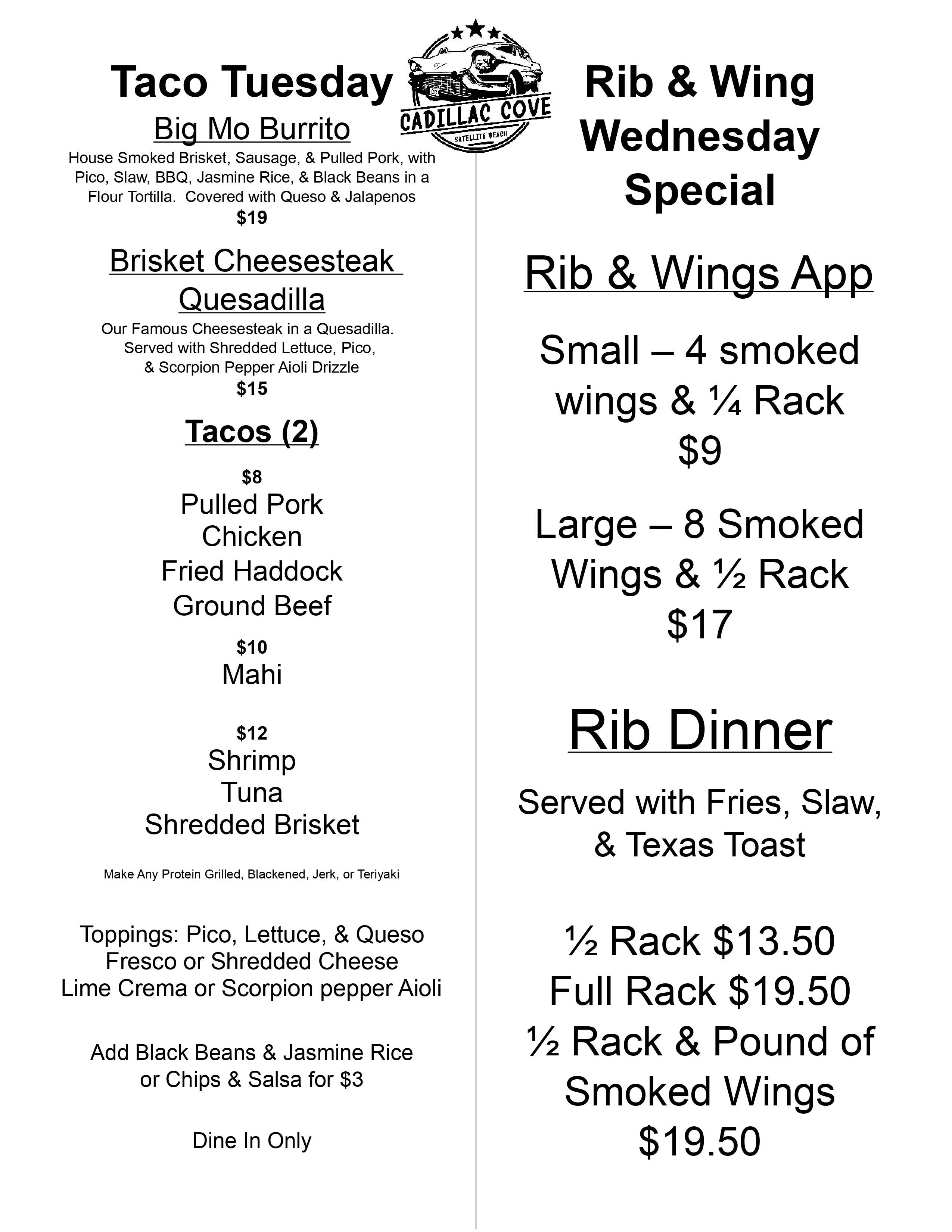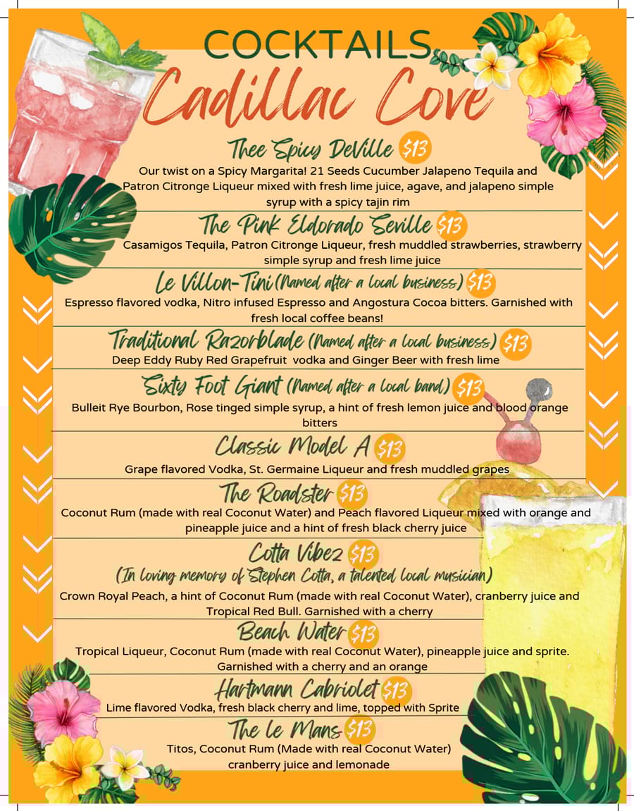 Welcome to Cadillac Cove, Satellite Beach, FL - Discover delicious dishes, enjoy a delightful cocktail, and get lost in the live music and entertainment. We're your local spot for relaxing vibes, great food, and good times!